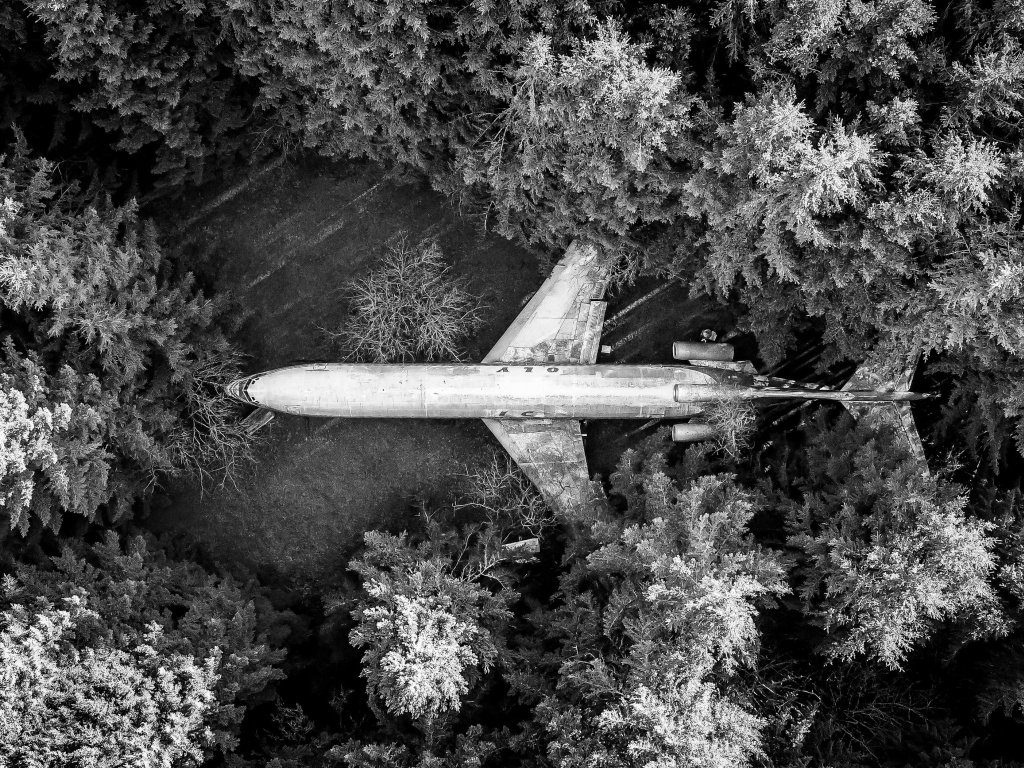 Обои: самолет, черное и белое - 1024x768