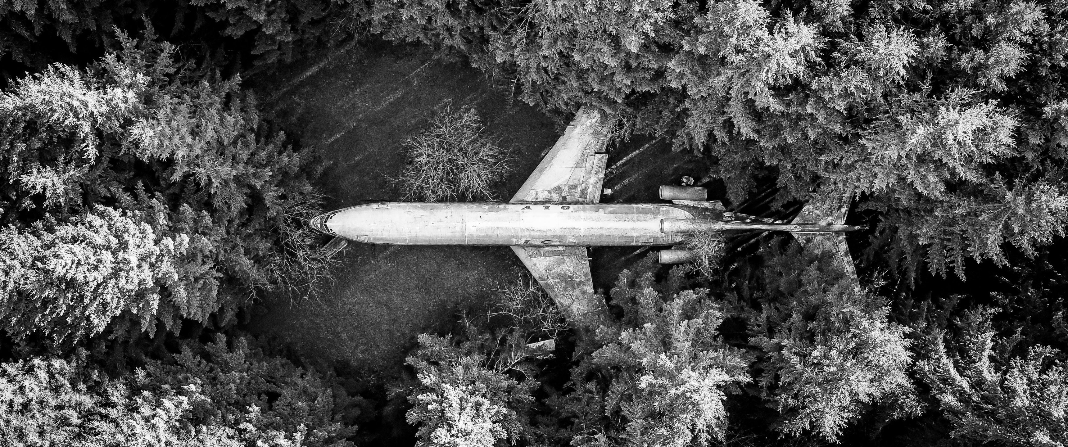 Обои: самолет, черное и белое - 3440x1440