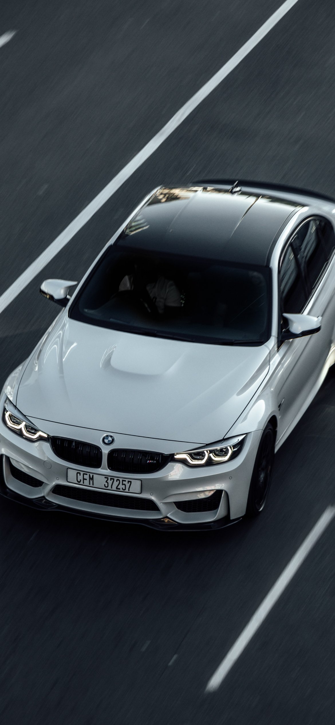 Обои: белый BMW, вид сверху - 1170x2532