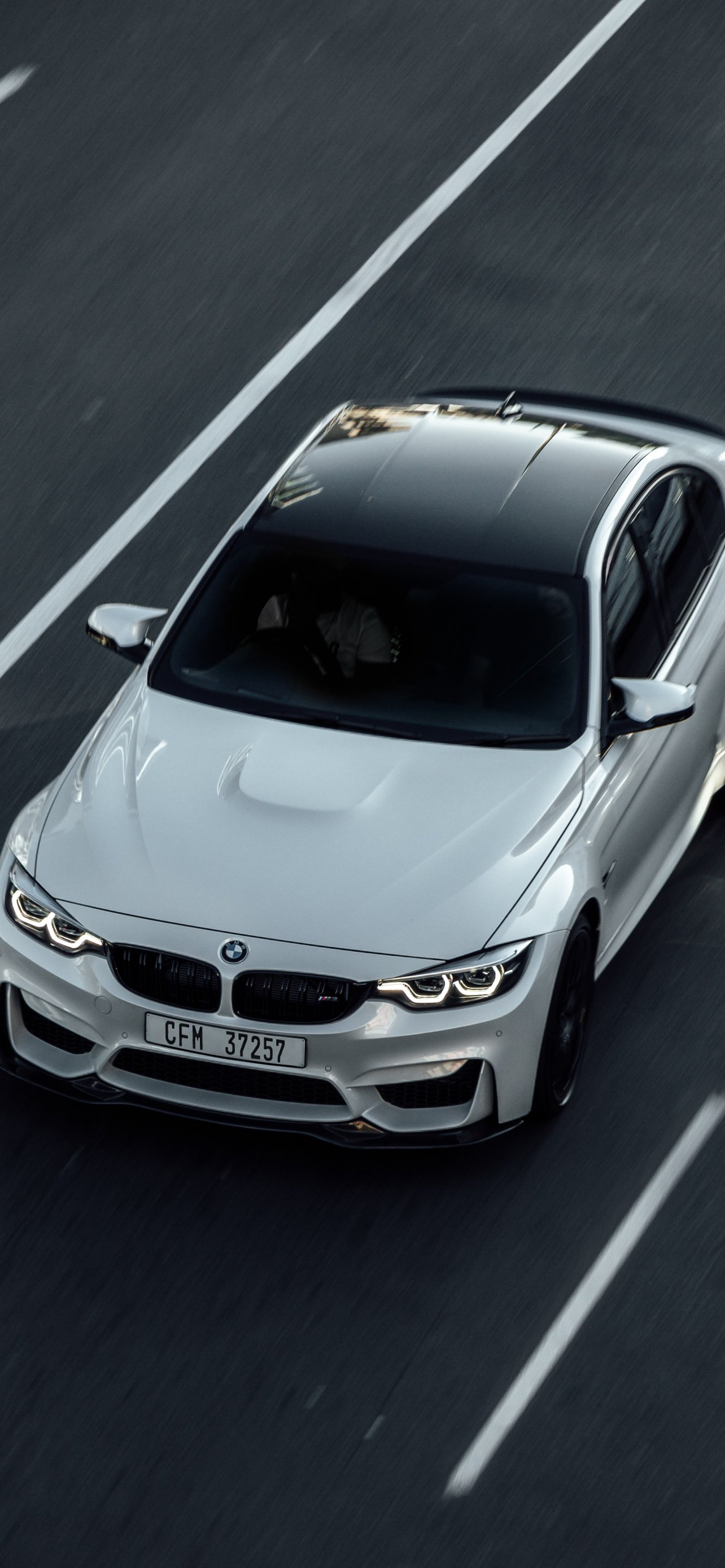 Обои: белый BMW, вид сверху - 1284x2778