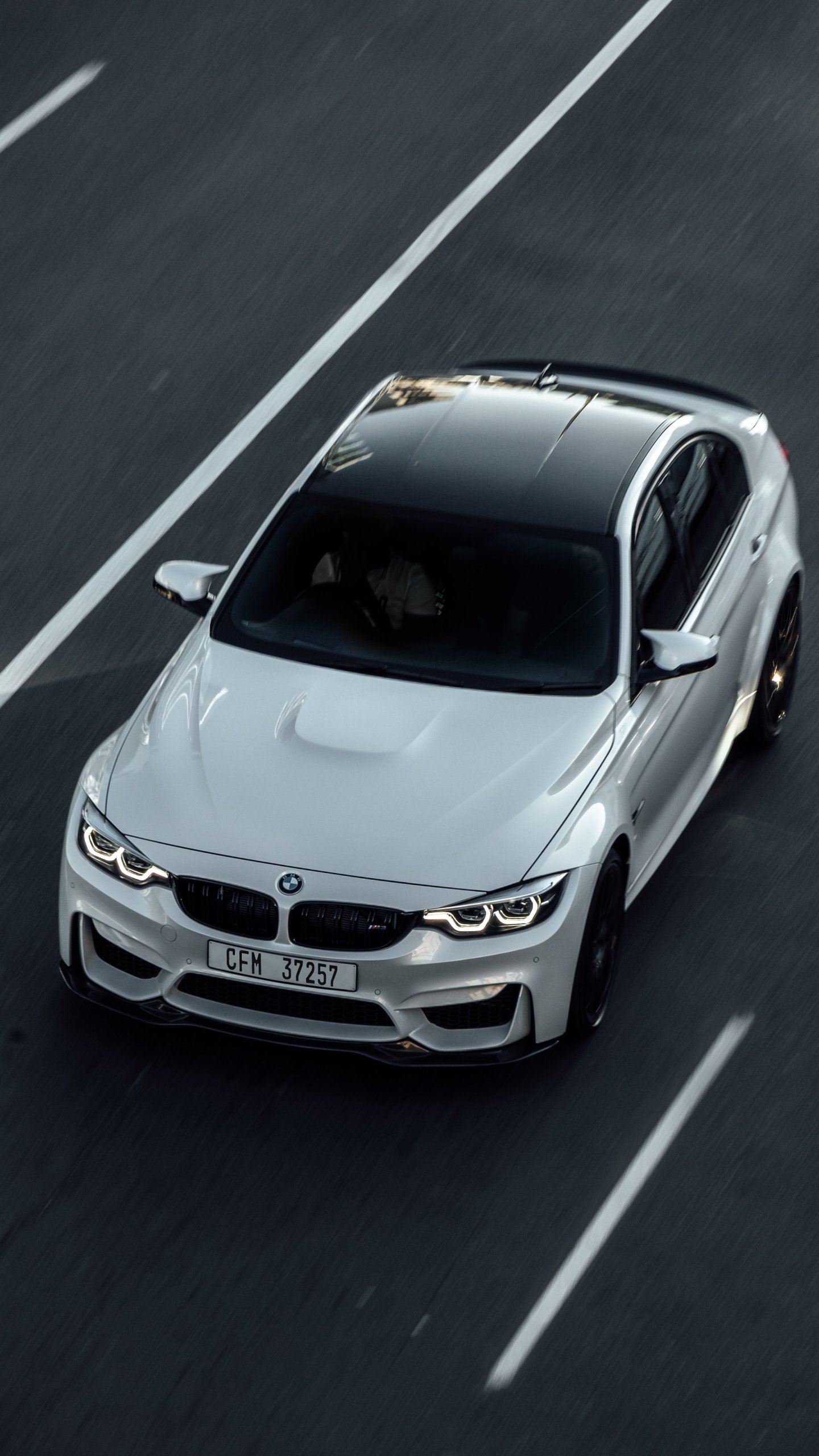 Обои: белый BMW, вид сверху - 1440x2560