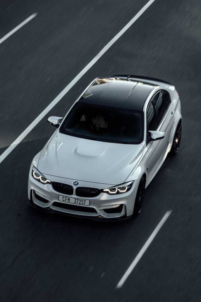 Обои: белый BMW, вид сверху - 640x960