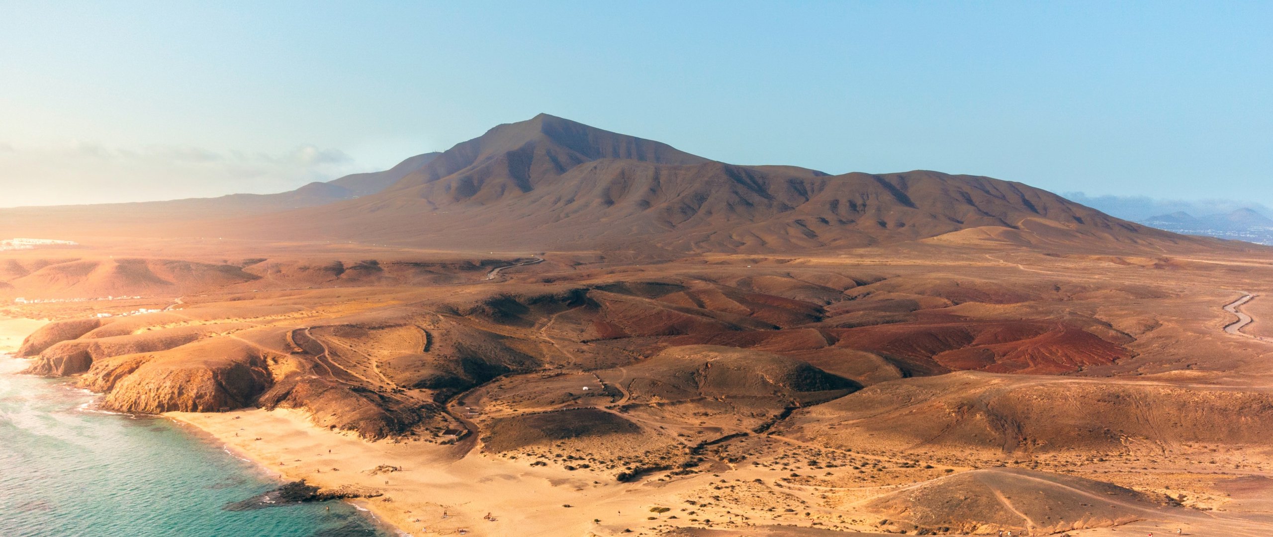 Обои: Лансароте, Испания, вид с высоты птичьего полета - 2560x1080