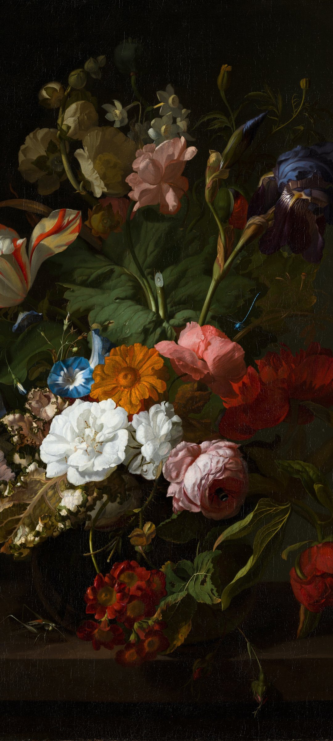 Обои: картина маслом, цветочная композиция, темный - 1080x2400