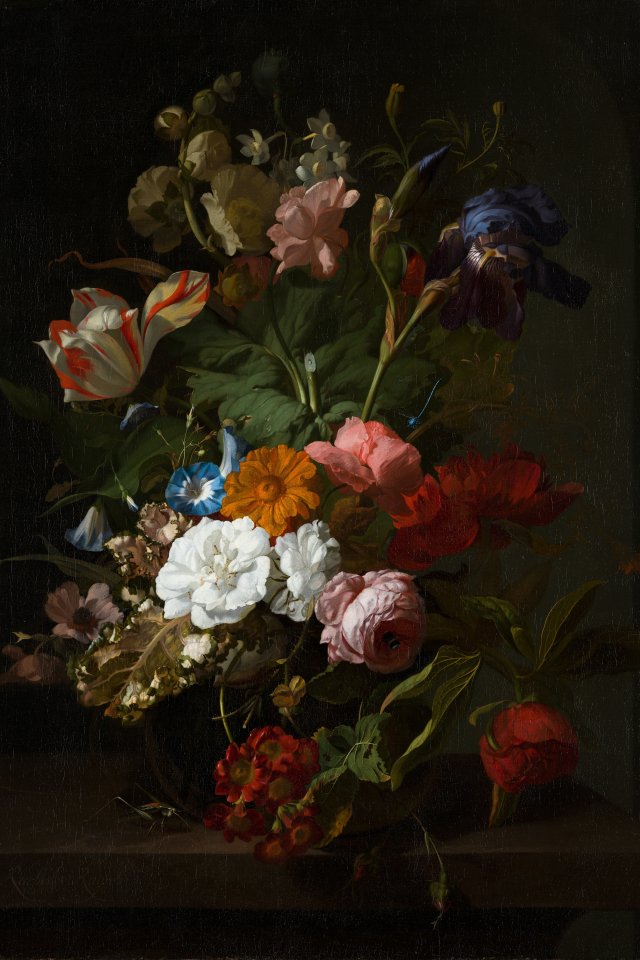 Обои: картина маслом, цветочная композиция, темный - 640x960