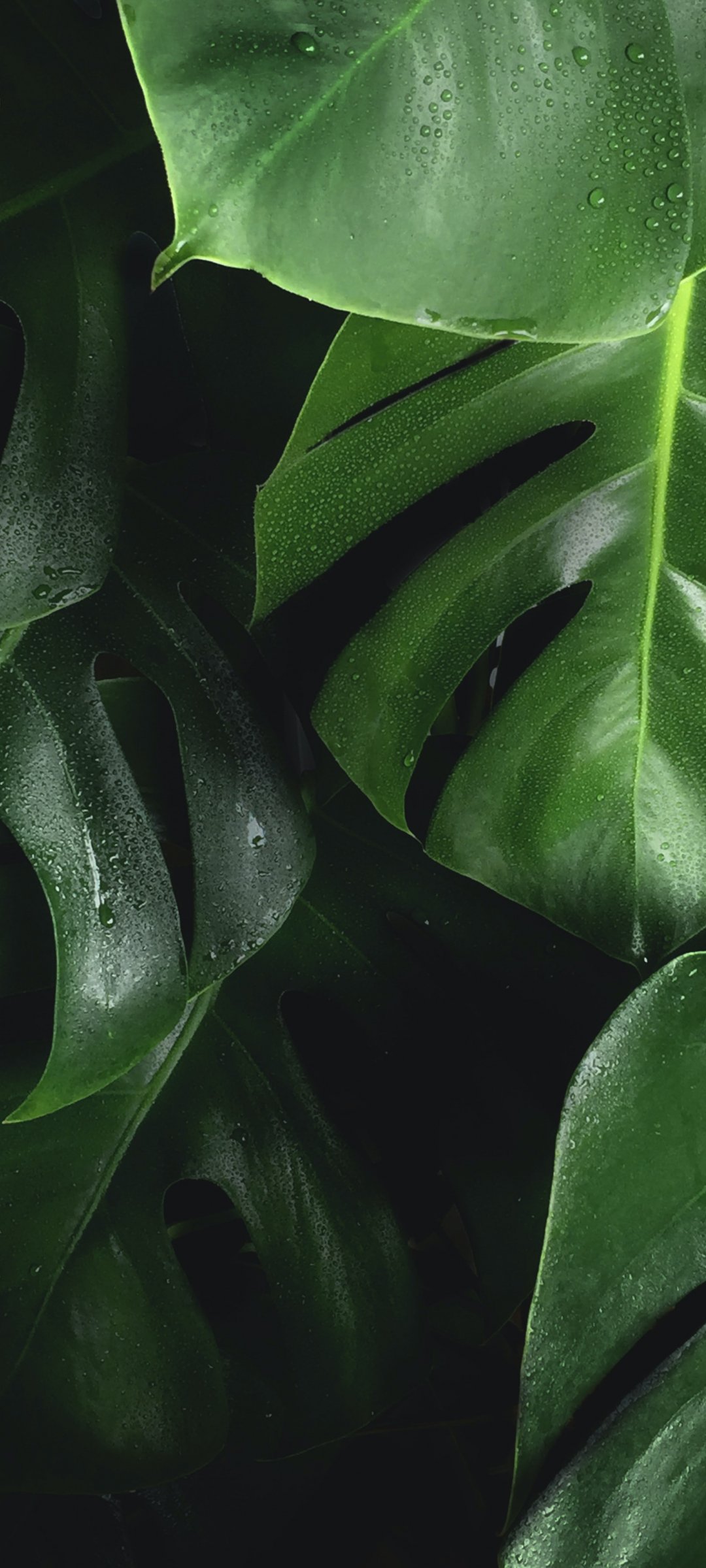 Обои: листья, капли воды - 1080x2400