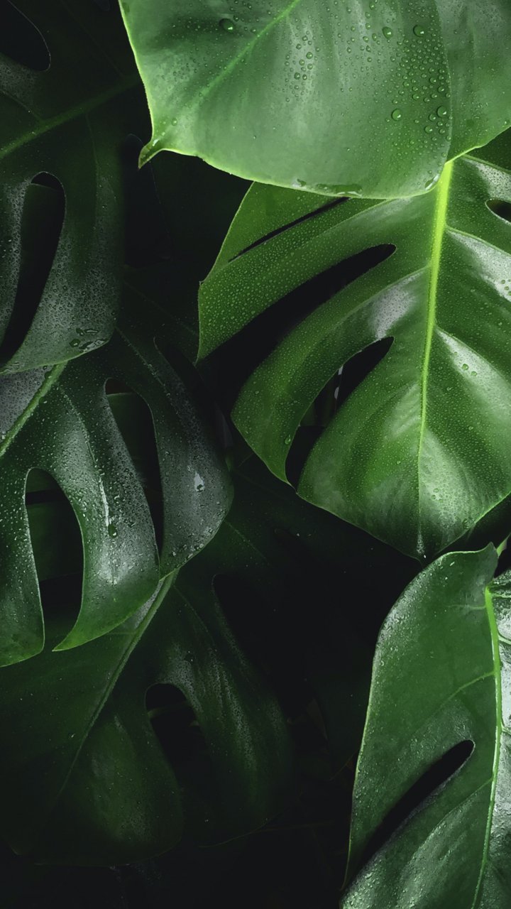 Обои: листья, капли воды - 720x1280