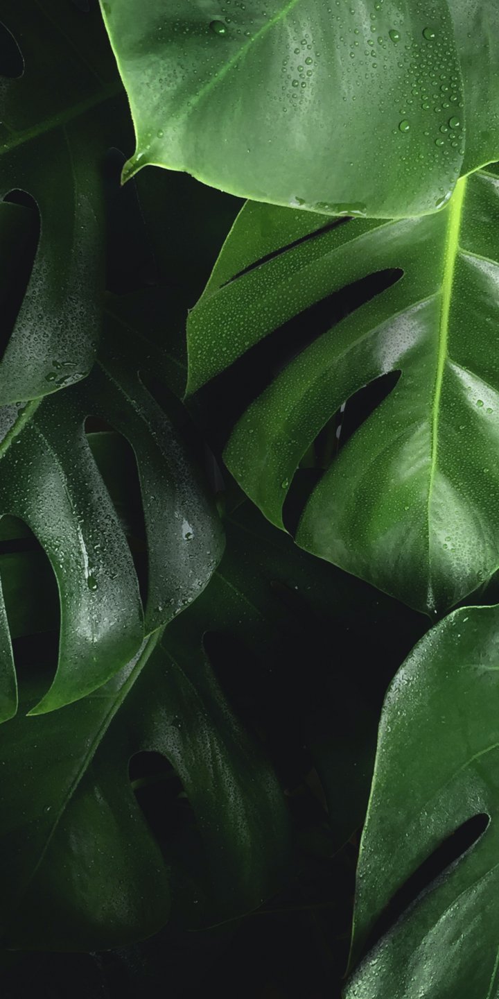 Обои: листья, капли воды - 720x1440