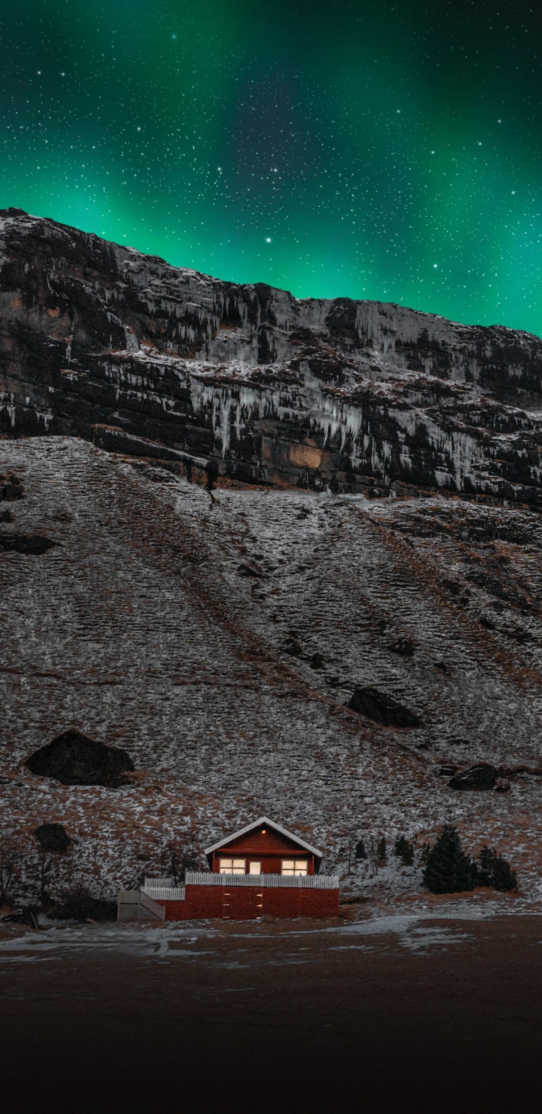 Обои: Исландия, дом у озера - 1080x2220