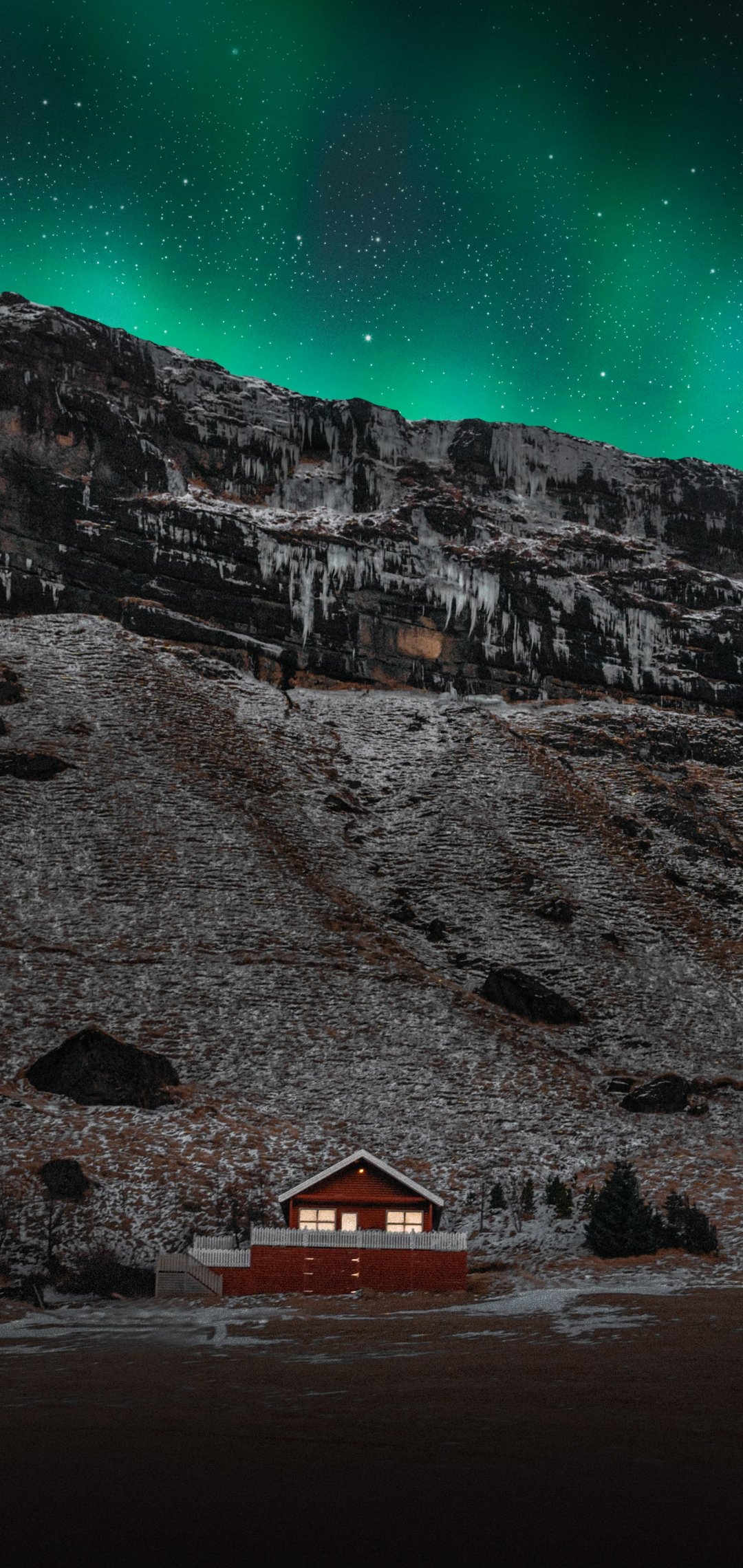 Обои: Исландия, дом у озера - 1080x2280