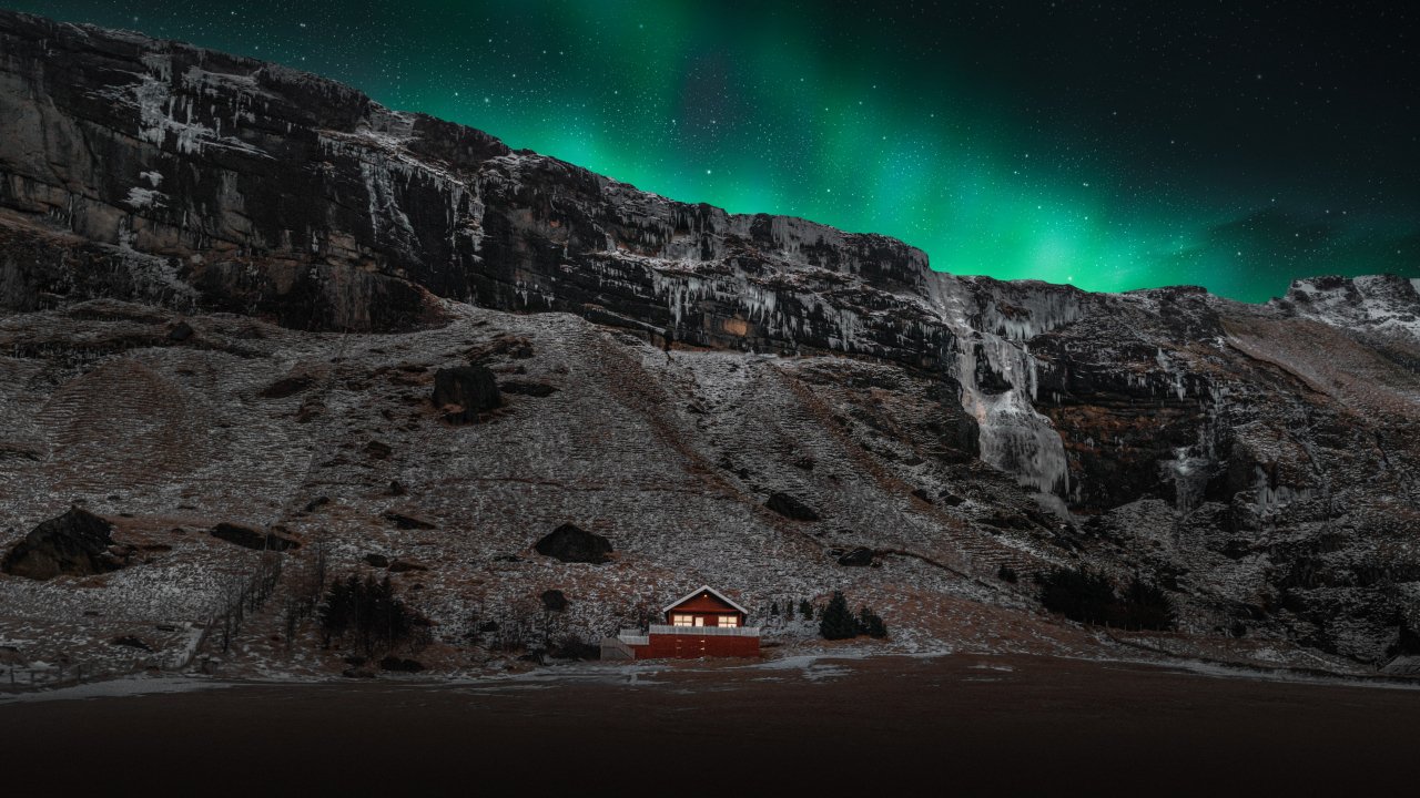 Обои: Исландия, дом у озера - 1280x720