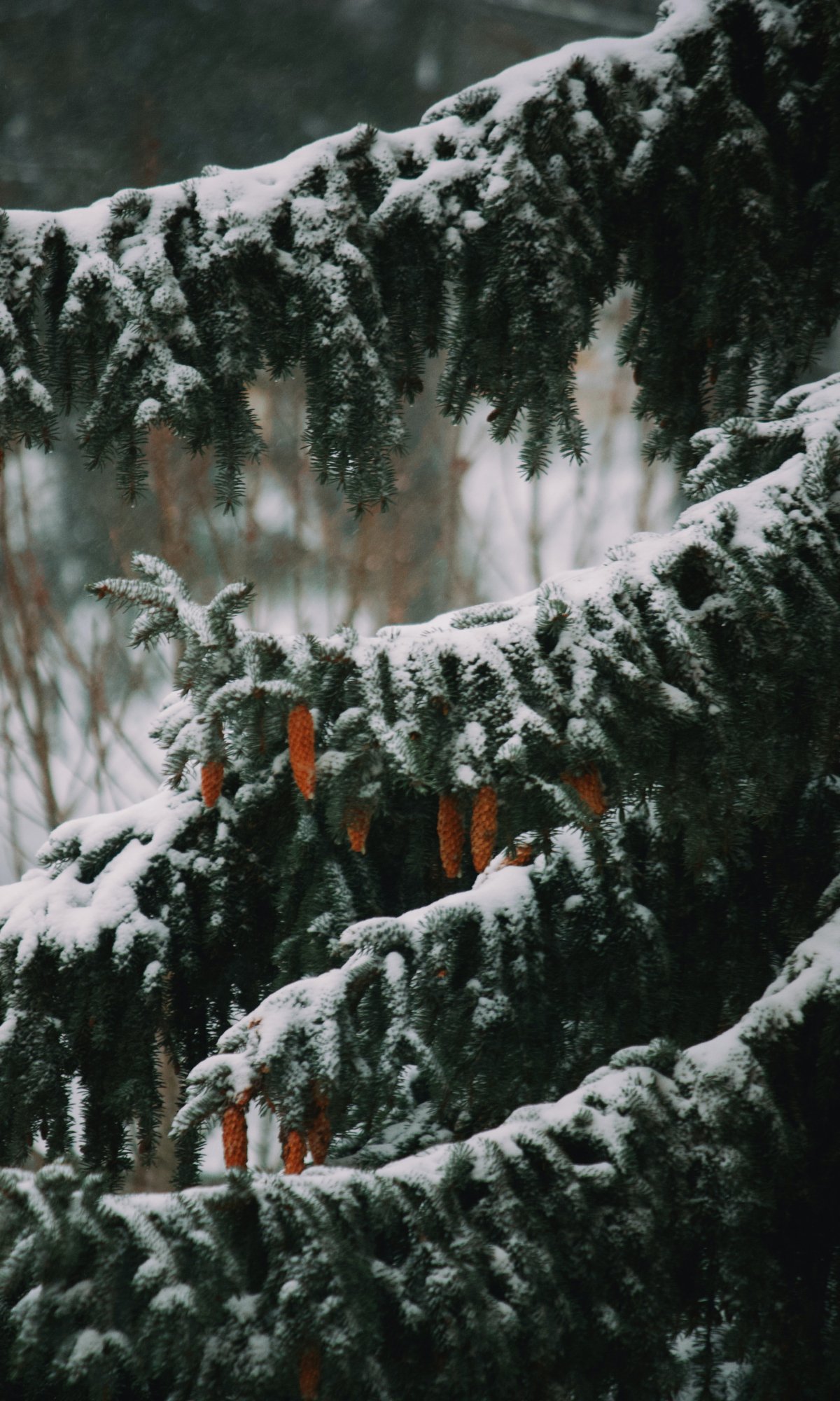 Обои: ель, зима, снег - 1200x2000