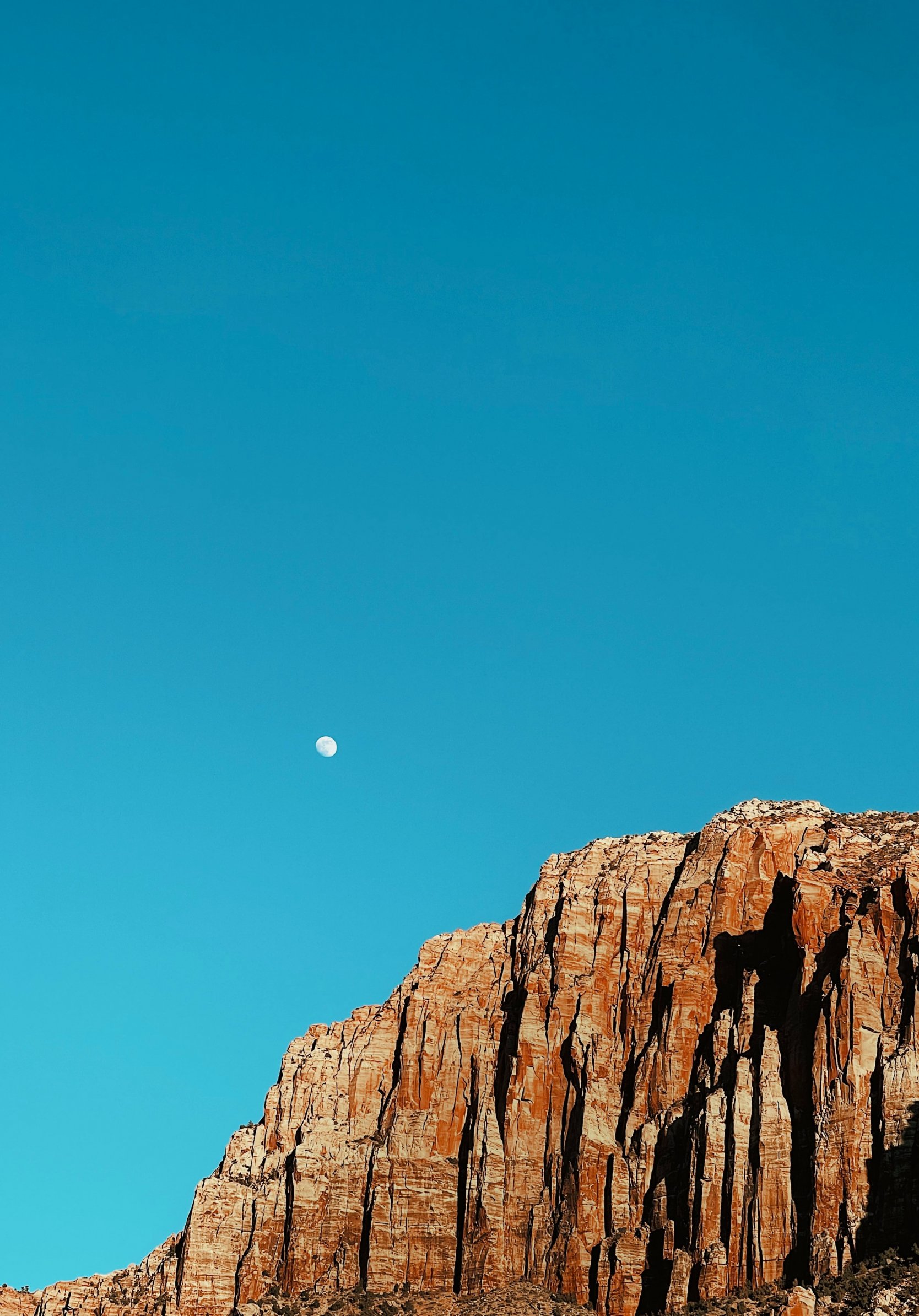 Обои: луна, голубое небо, горы - 1668x2388