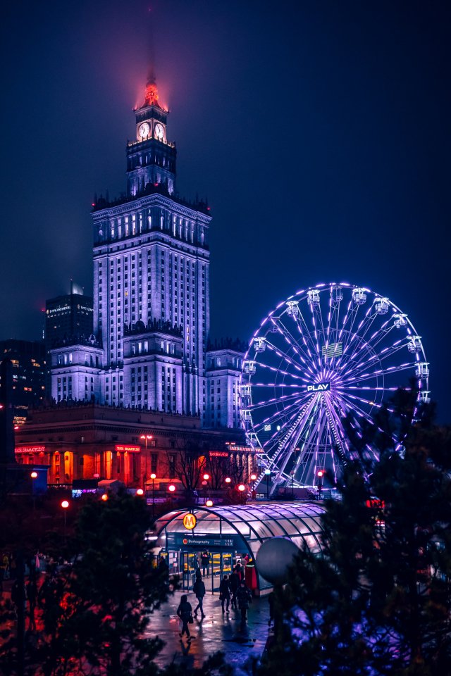 Обои: Варшава, Польша, ночной город - 640x960