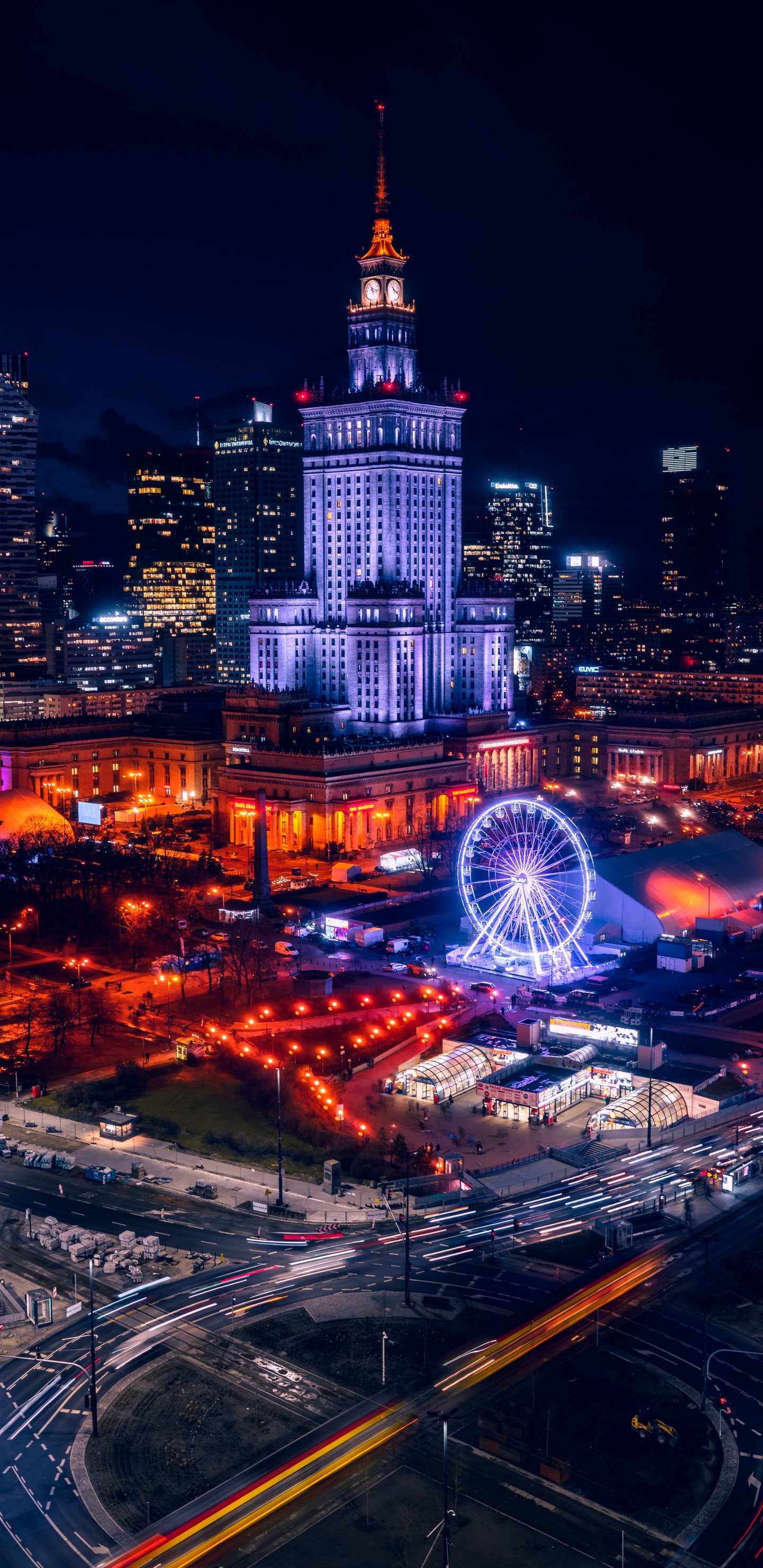 Обои: Варшава, Польша, ночной город - 1440x2960