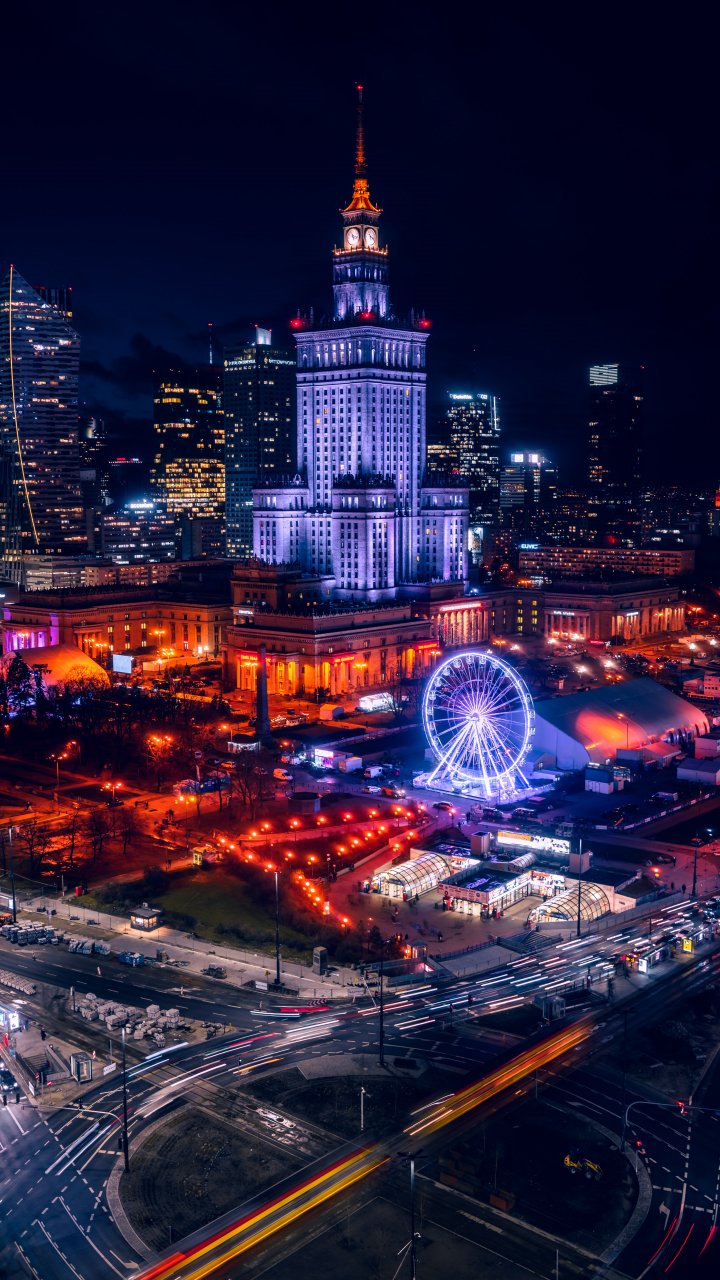 Обои: Варшава, Польша, ночной город - 720x1280