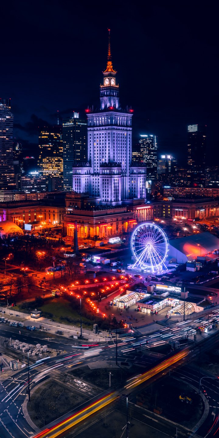 Обои: Варшава, Польша, ночной город - 720x1440