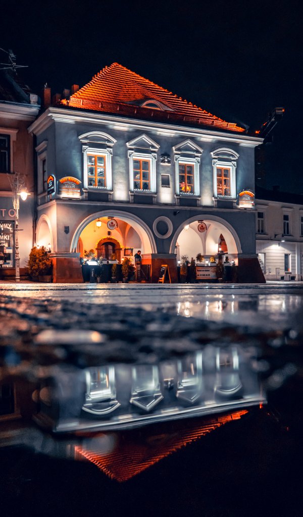 Обои: Кельце, Польша, ночной город - 600x1024