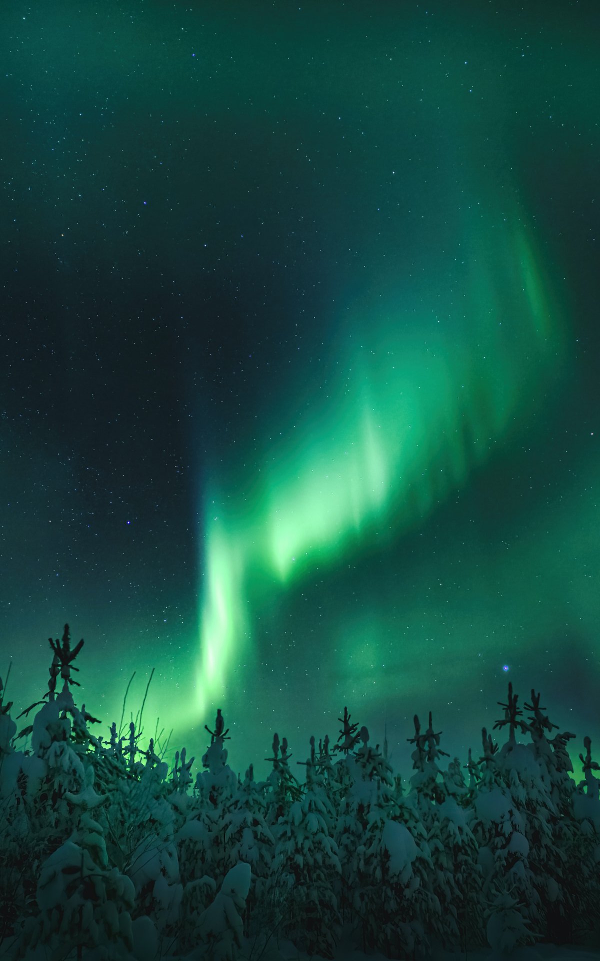 Обои: северное сияние, ночь, зеленый - 1200x1920