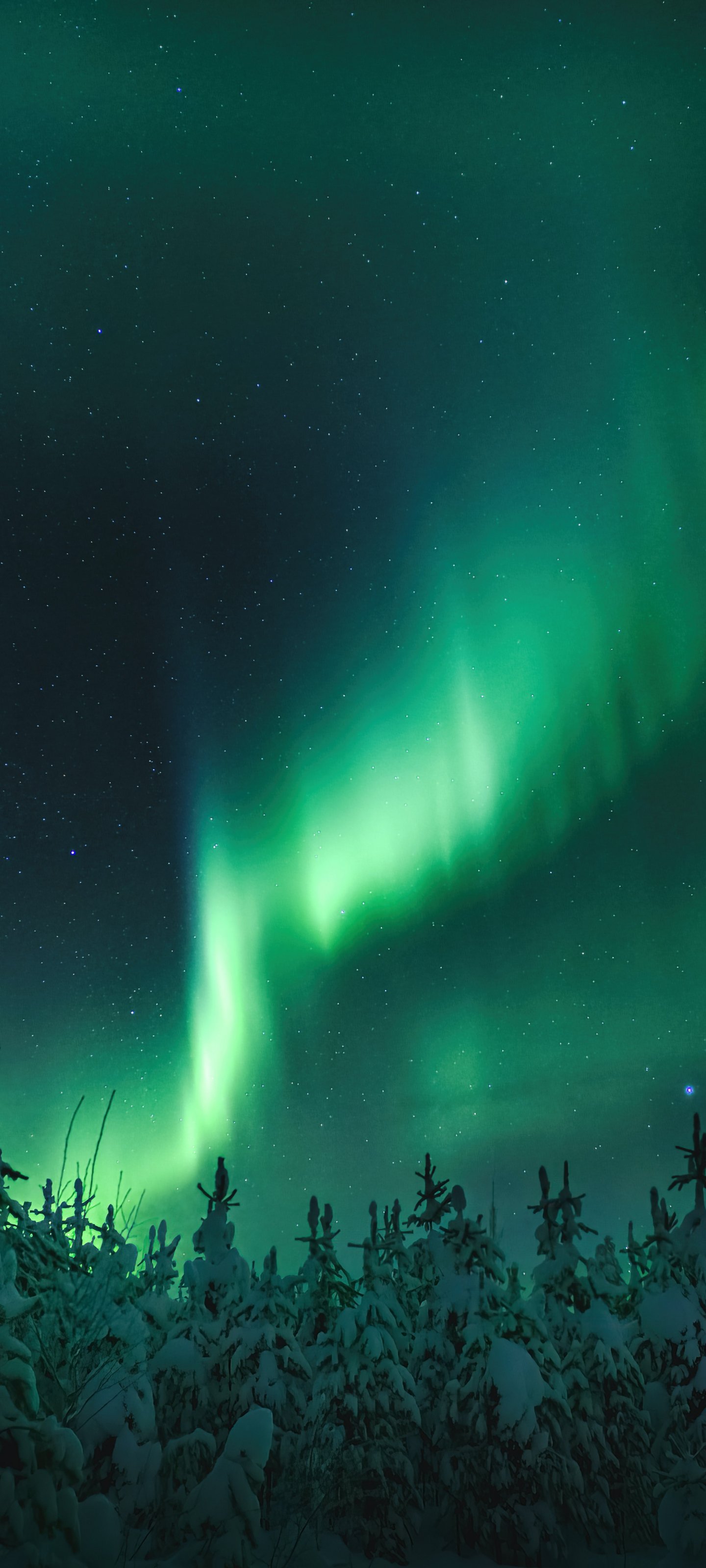 Обои: северное сияние, ночь, зеленый - 1440x3200