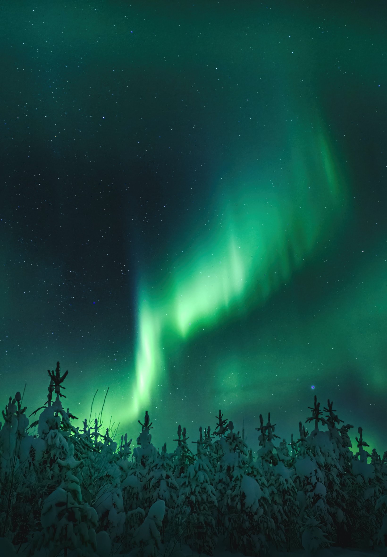 Обои: северное сияние, ночь, зеленый - 1640x2360