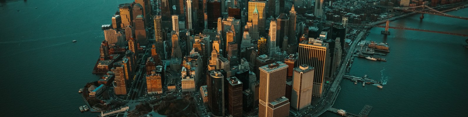 Обои: Нью-Йорк, США, вид с высоты птичьего полета - 1590x400