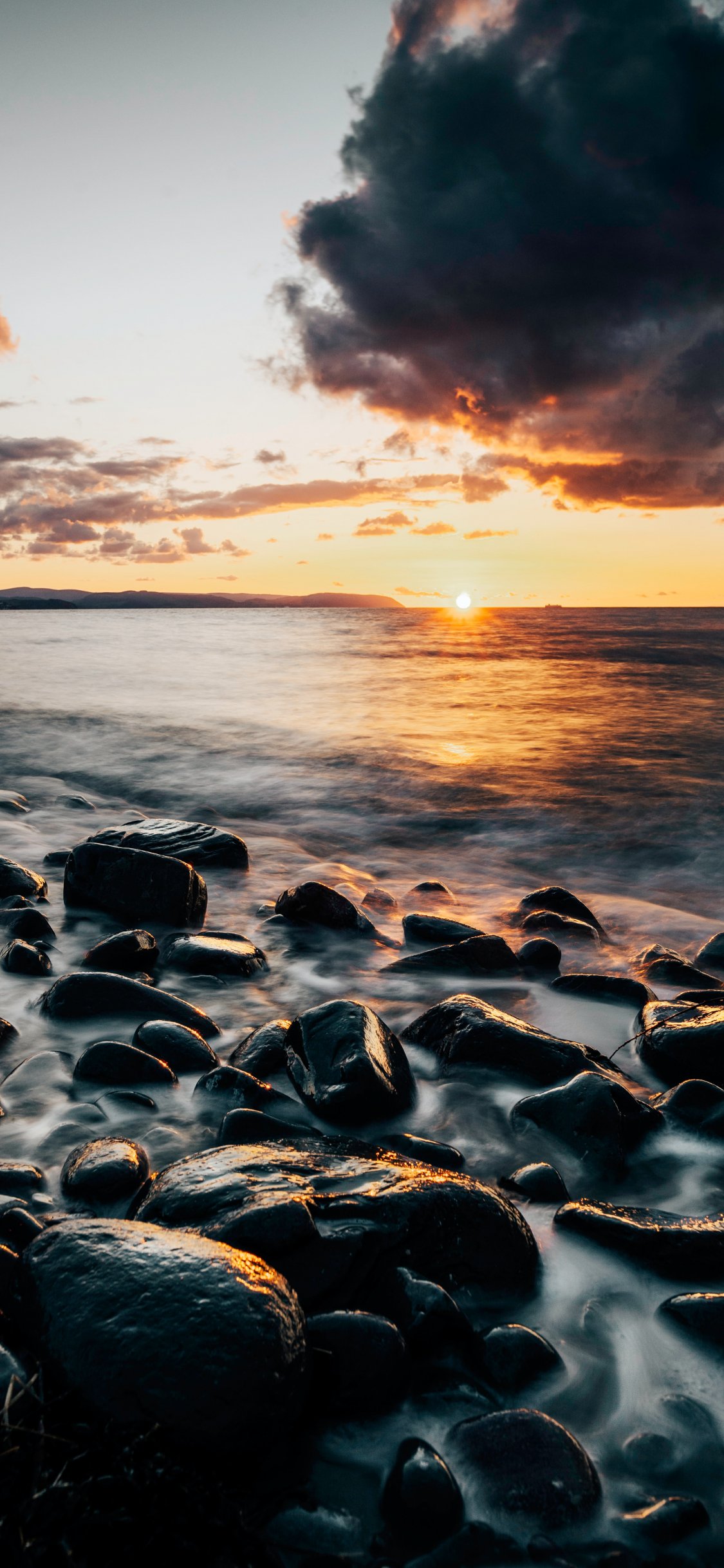 Обои: морской берег, закат, пляж - 1125x2436