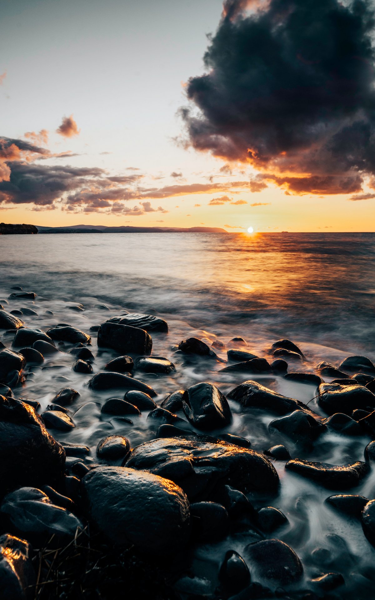 Обои: морской берег, закат, пляж - 1200x1920