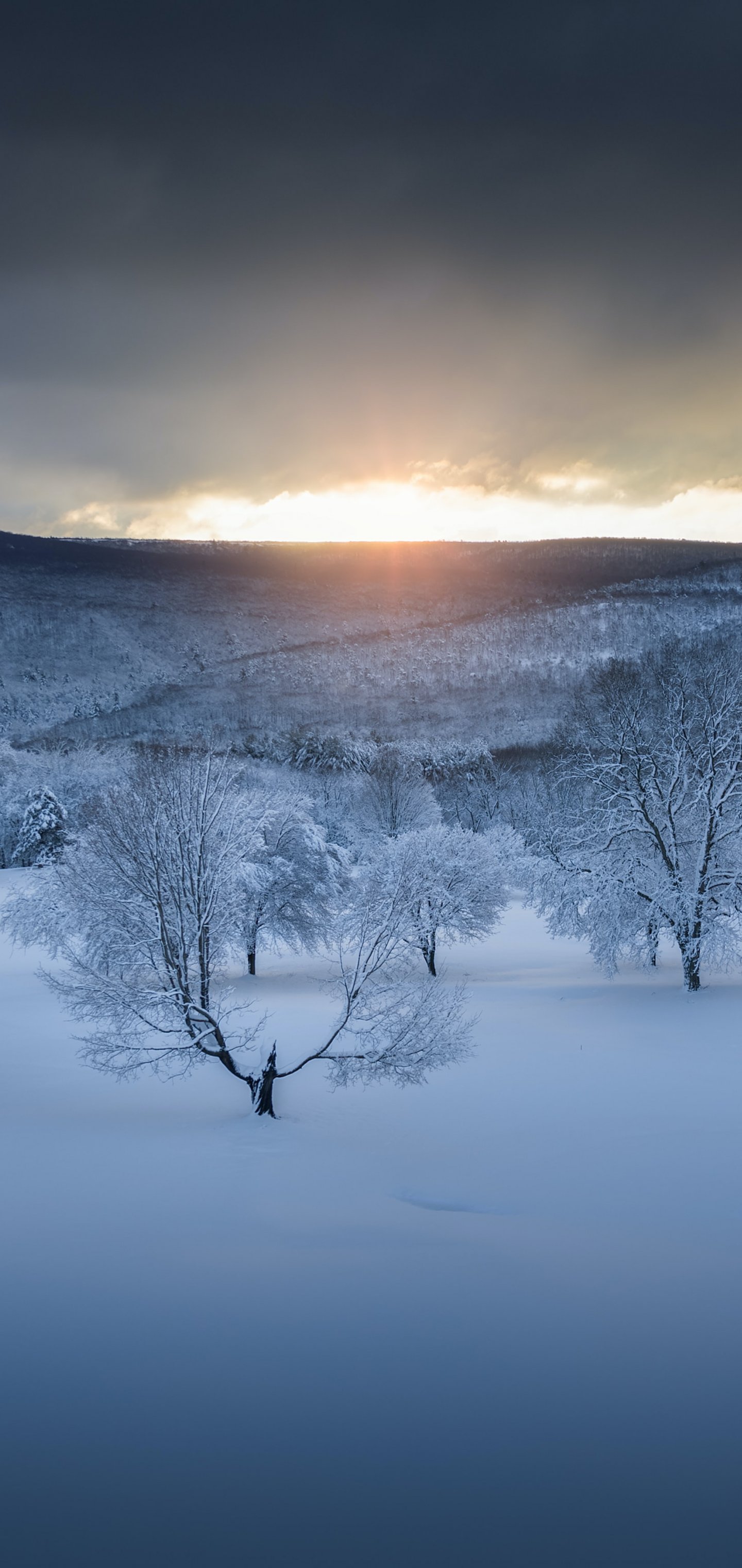 Обои: зимний лес, закат, зима - 1440x3040