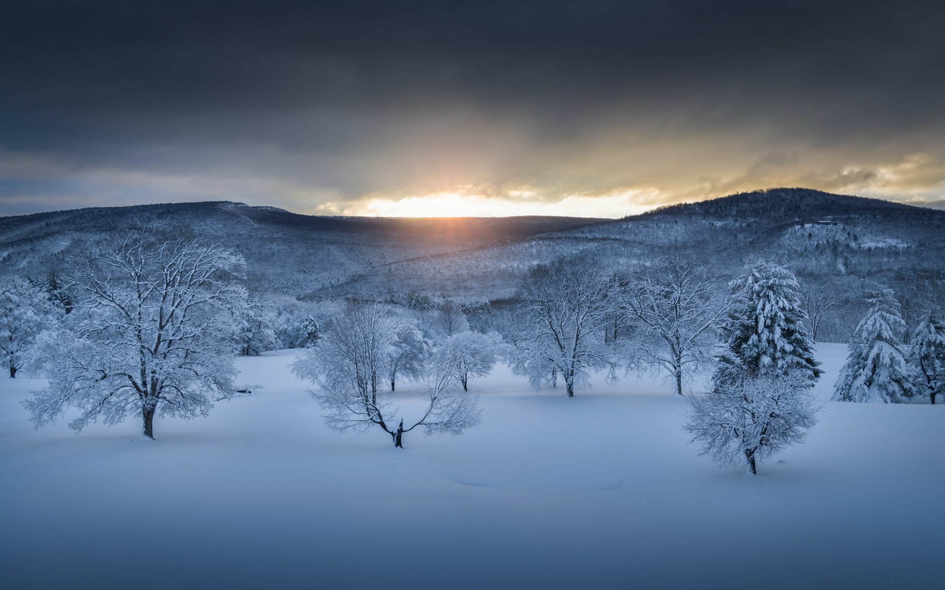 Обои: зимний лес, закат, зима - 1920x1200