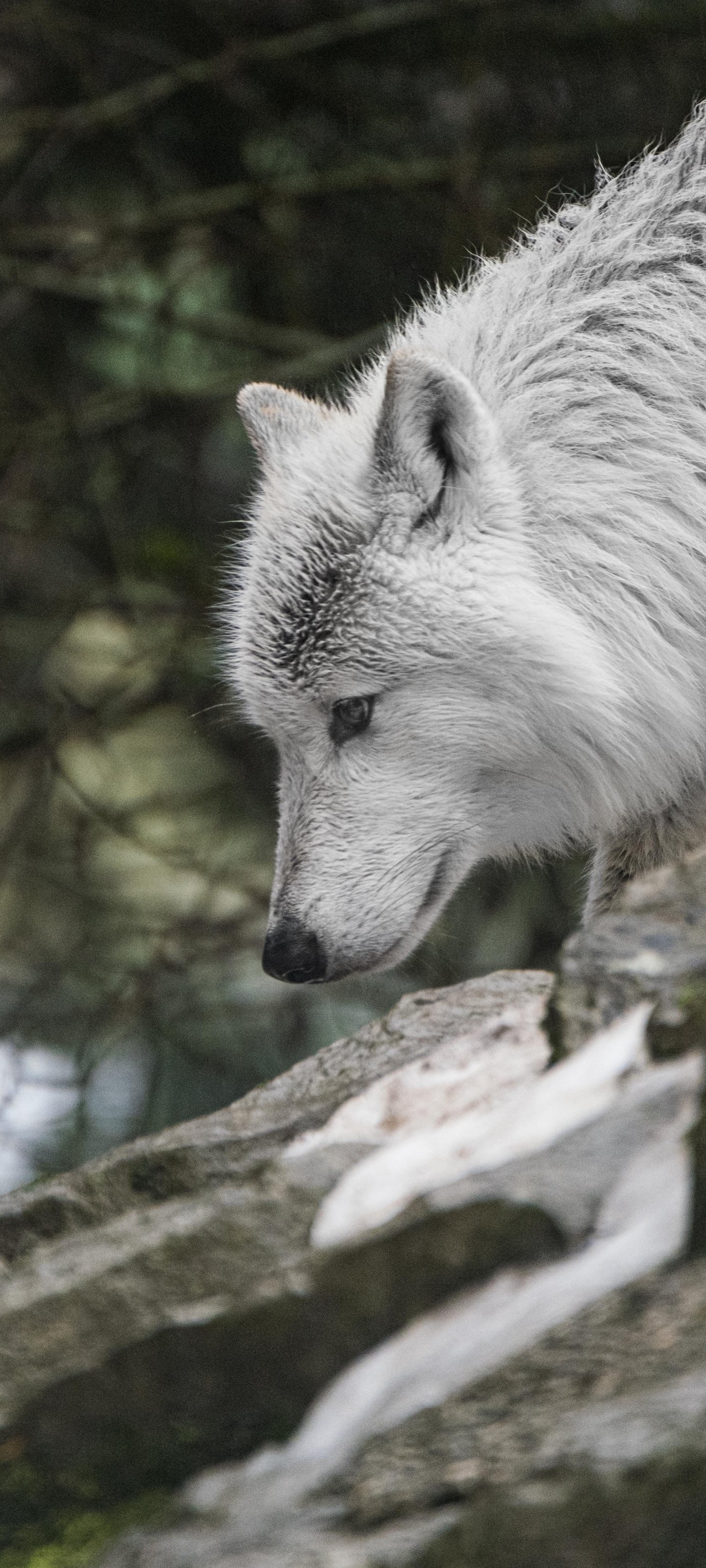 Обои: белый волк, хищник, дикая природа - 1440x3200