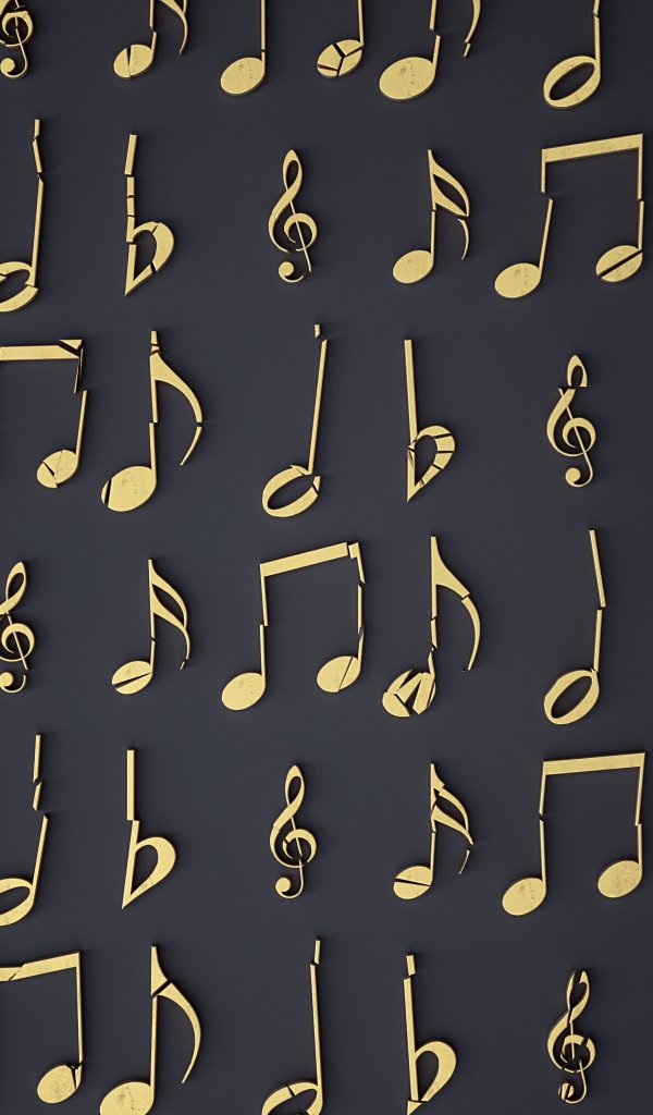 Обои: ноты, на сером фоне - 600x1024