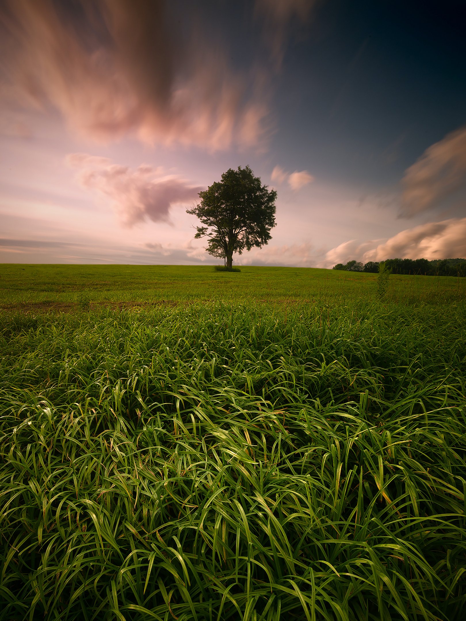 Обои: одинокое дерево, дуб, поле - 1620x2160