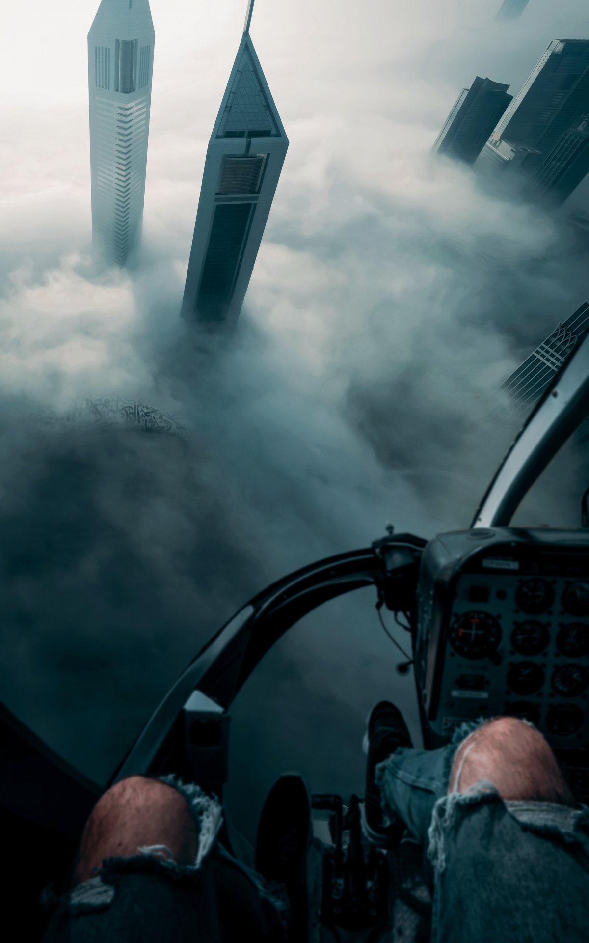 Обои: кабина вертолета, полет, вид с высоты птичьего полета - 1200x1920