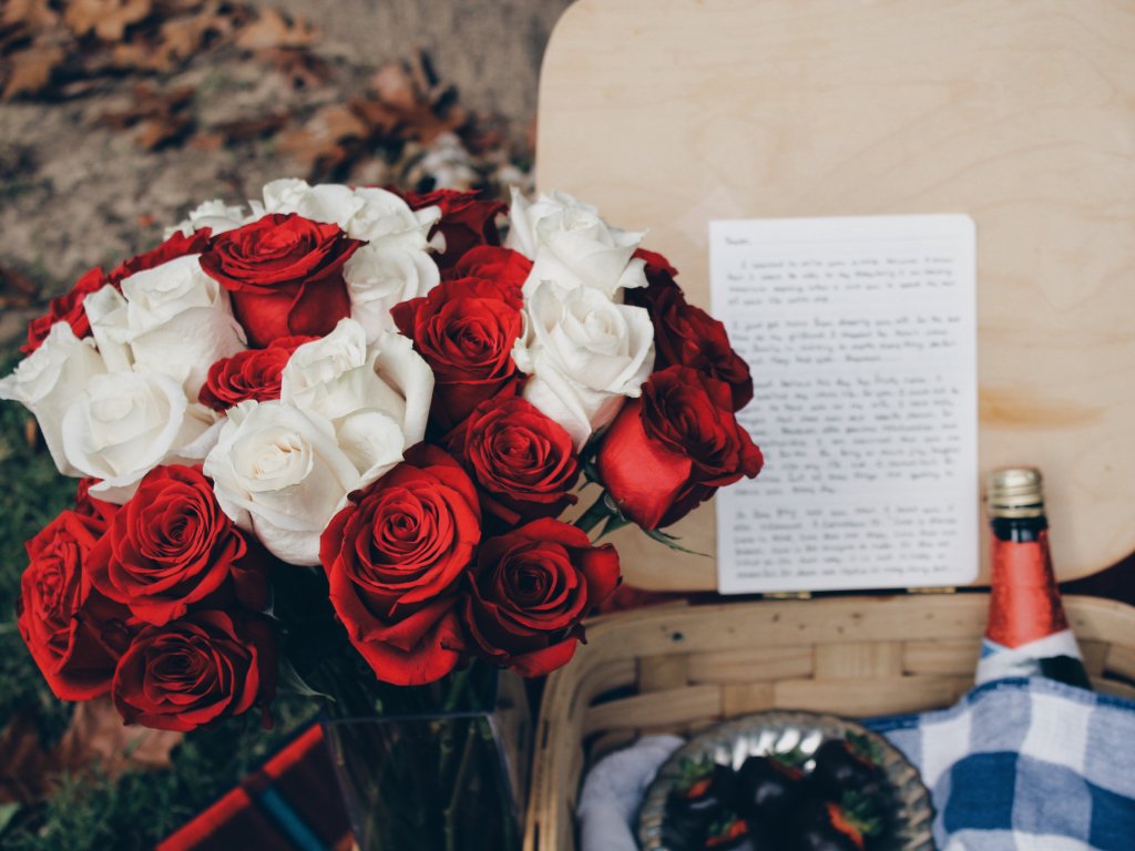 Обои: букет роз, романтика, пикник - 1024x768