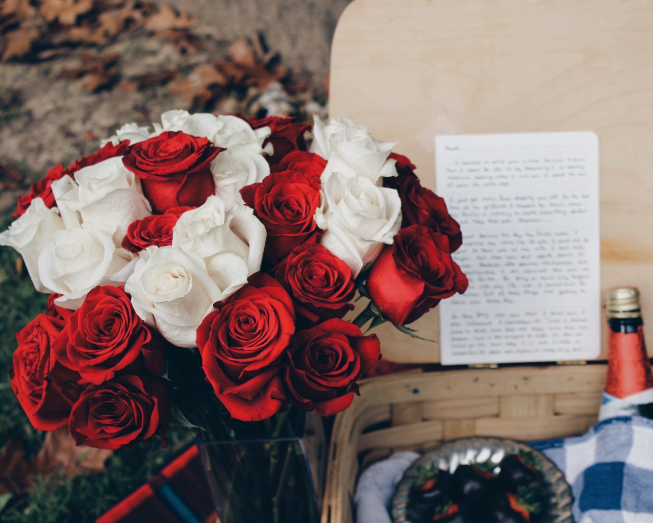 Обои: букет роз, романтика, пикник - 1280x1024