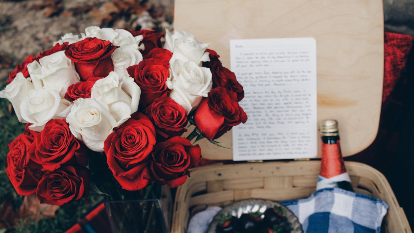 Обои: букет роз, романтика, пикник - 1366x768