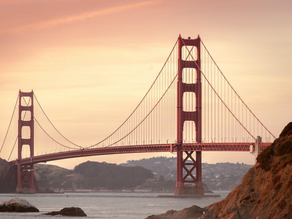 Обои: Мост Золотые Ворота, закат, Сан-Франциско - 1024x768