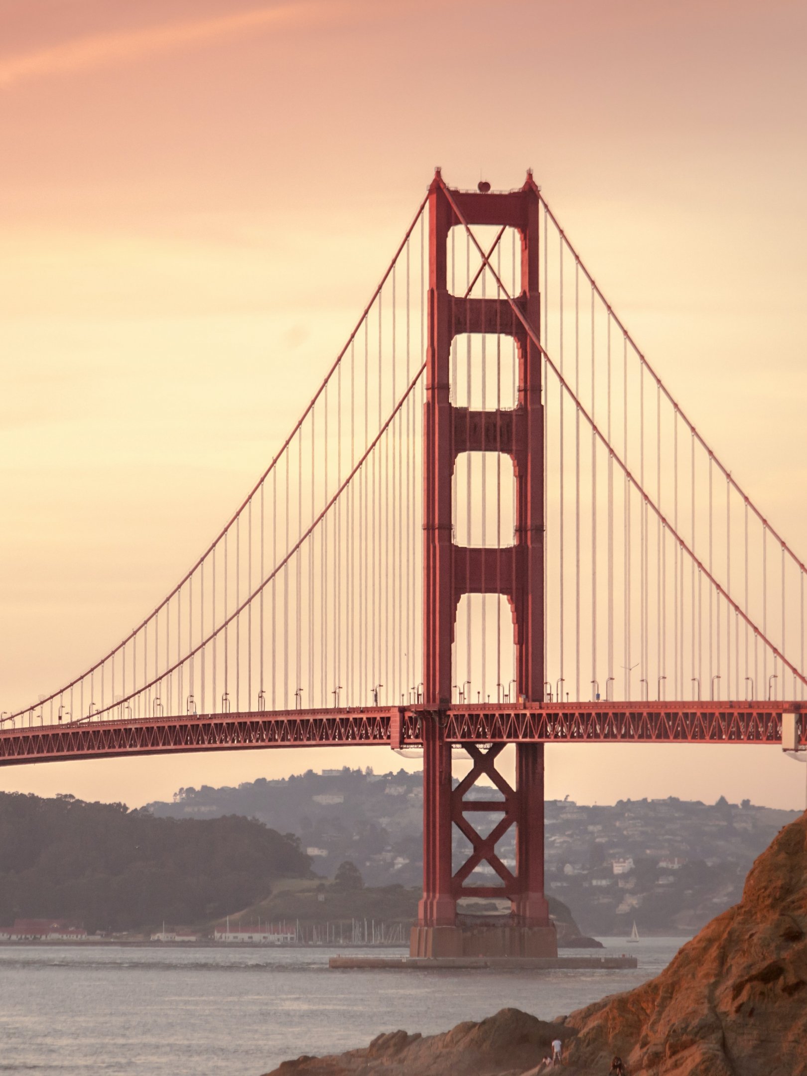 Обои: Мост Золотые Ворота, закат, Сан-Франциско - 1620x2160