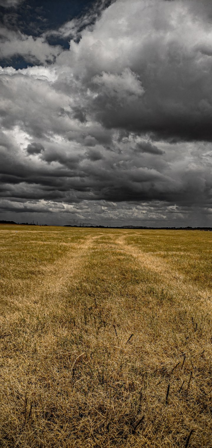 Обои: поле, горизонт, кучевые облака - 720x1520