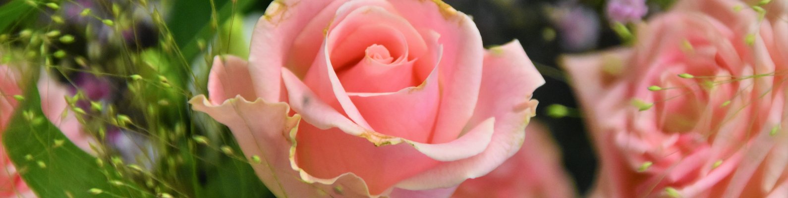Обои: розовая роза, цветочная композиция - 1590x400