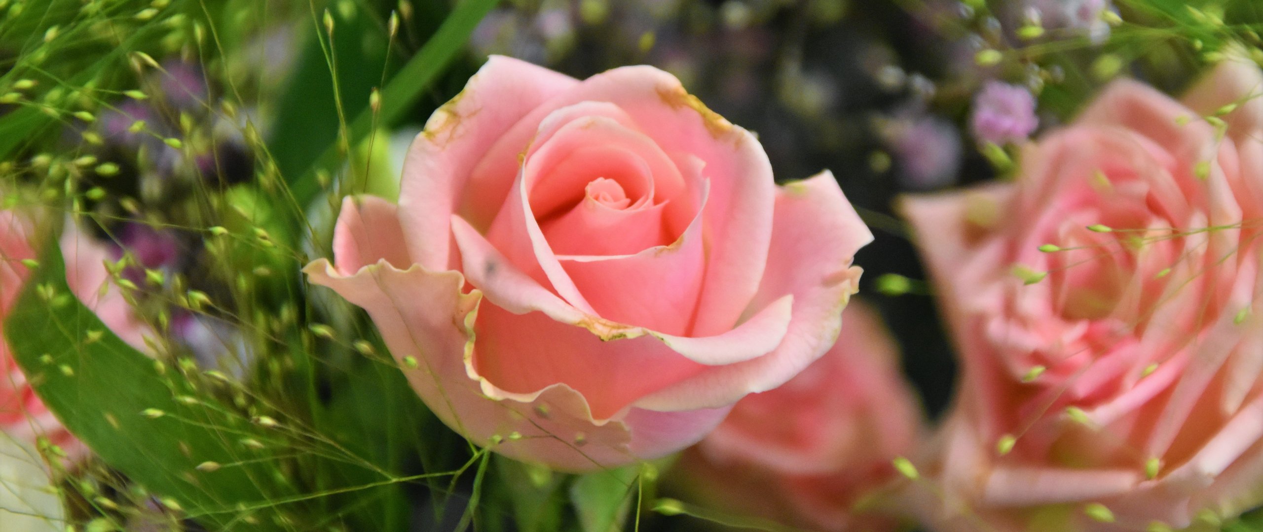 Обои: розовая роза, цветочная композиция - 2560x1080