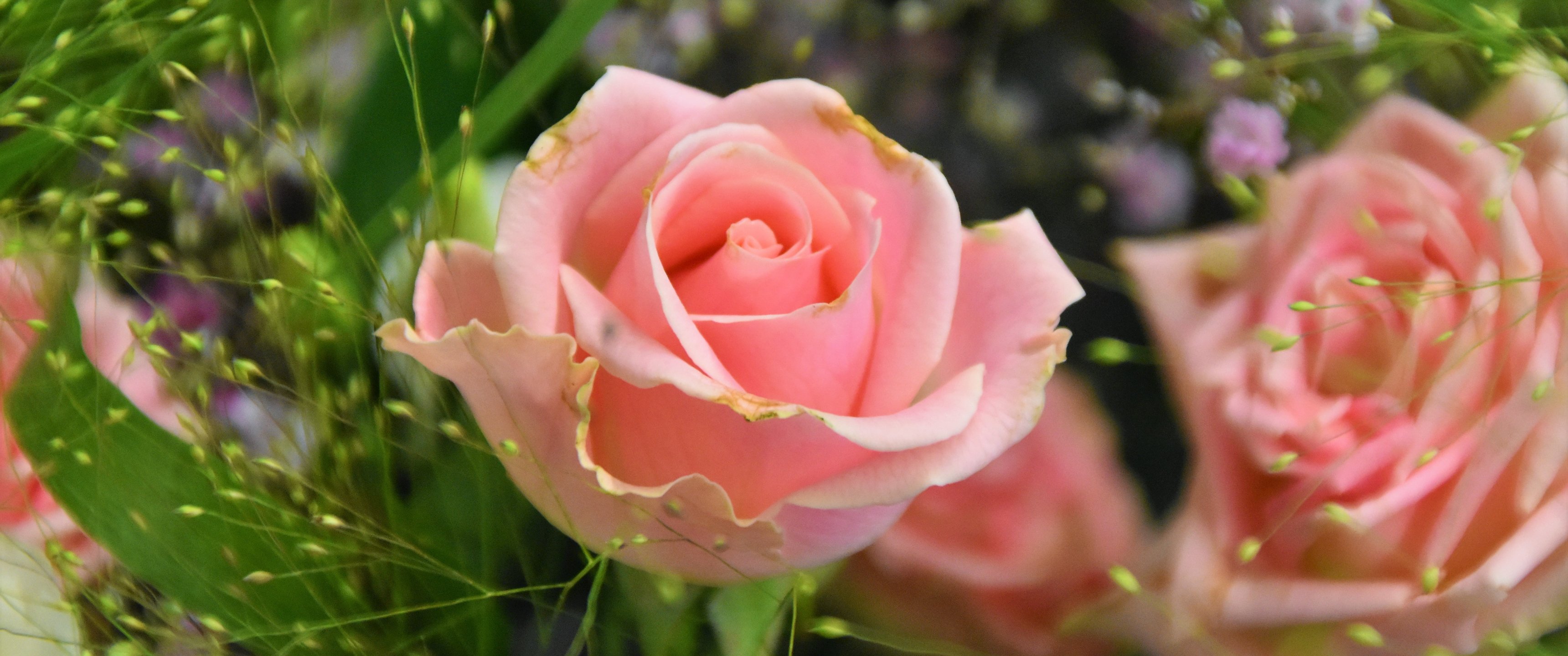 Обои: розовая роза, цветочная композиция - 3440x1440