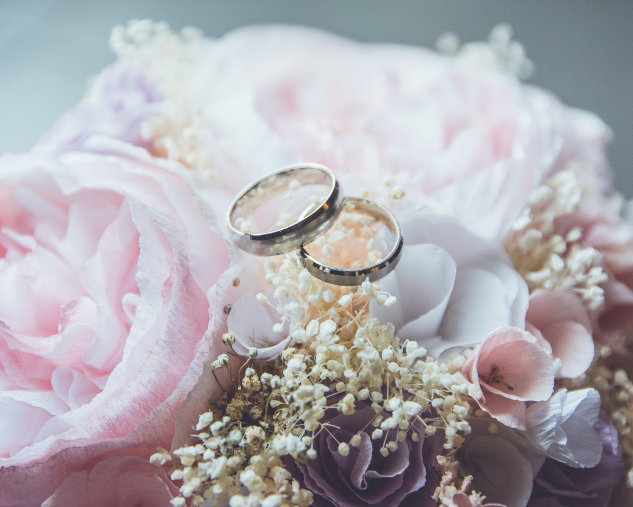 Обои: обручальные кольца, свадьба, цветочная композиция - 1280x1024