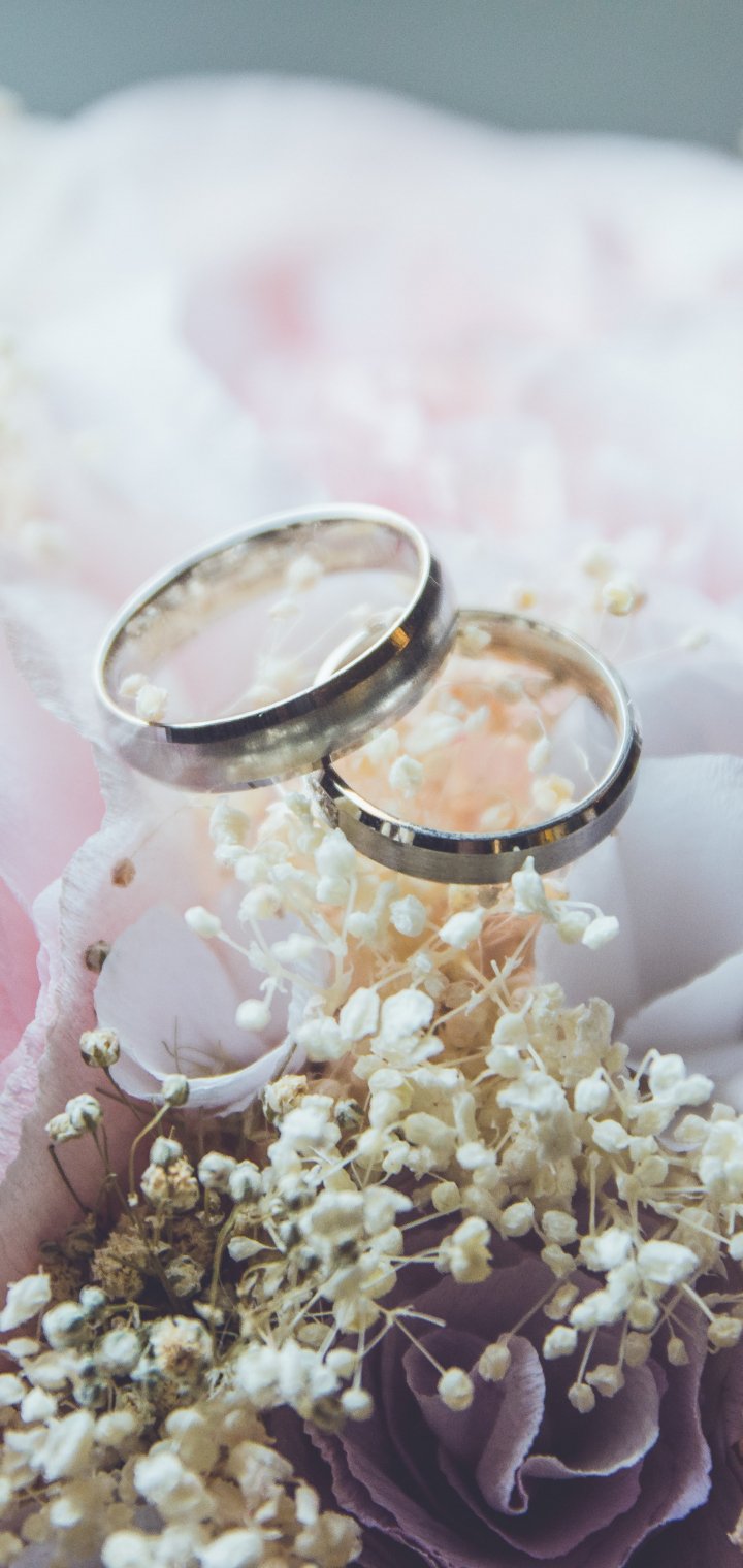 Обои: обручальные кольца, свадьба, цветочная композиция - 720x1520