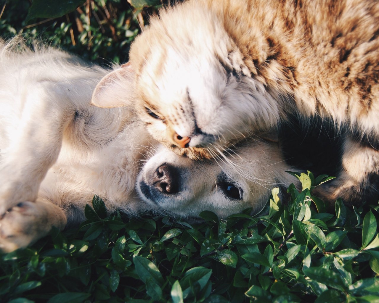 Обои: кошка и собака, друзья, милый - 1280x1024