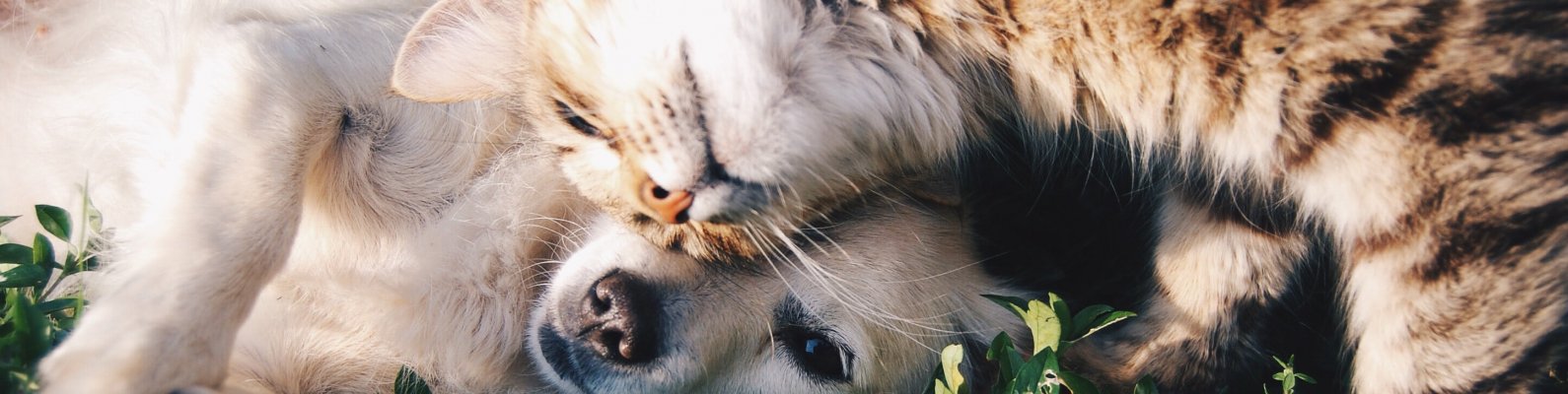Обои: кошка и собака, друзья, милый - 1590x400