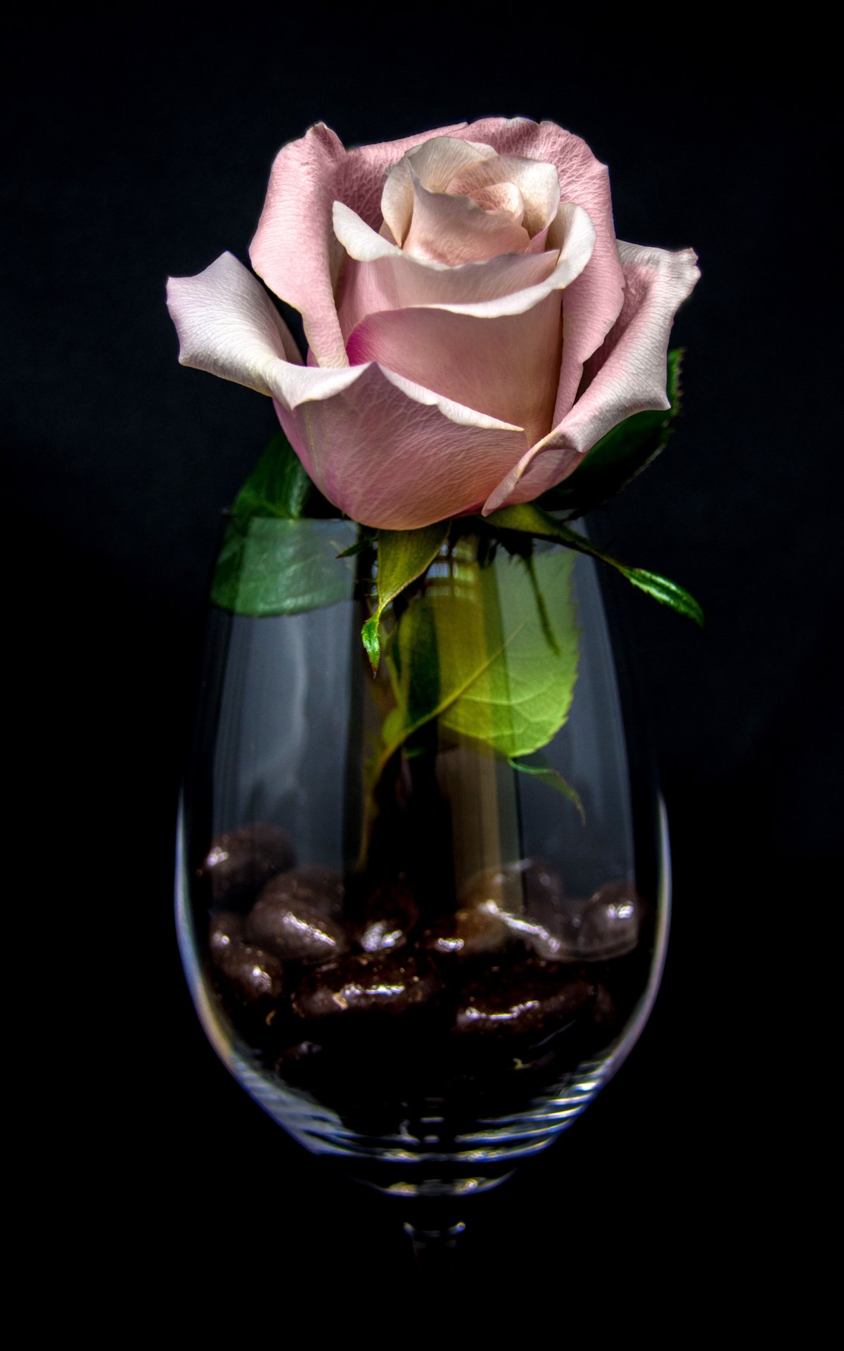 Обои: розовая роза в бокале, на черном фоне - 1200x1920