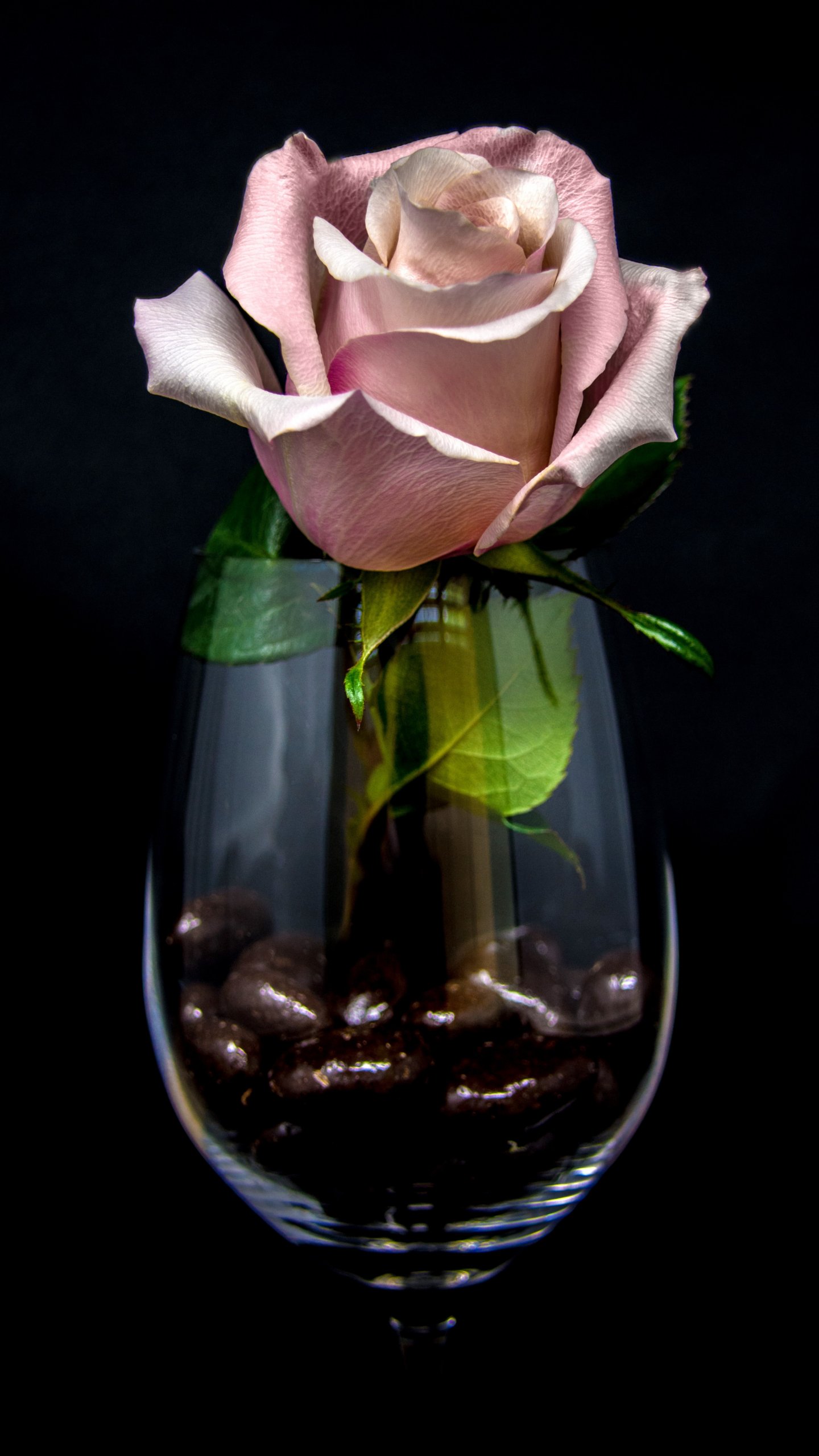 Обои: розовая роза в бокале, на черном фоне - 1440x2560