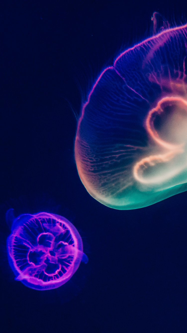 Обои: подводный мир, медузы, темный - 750x1334
